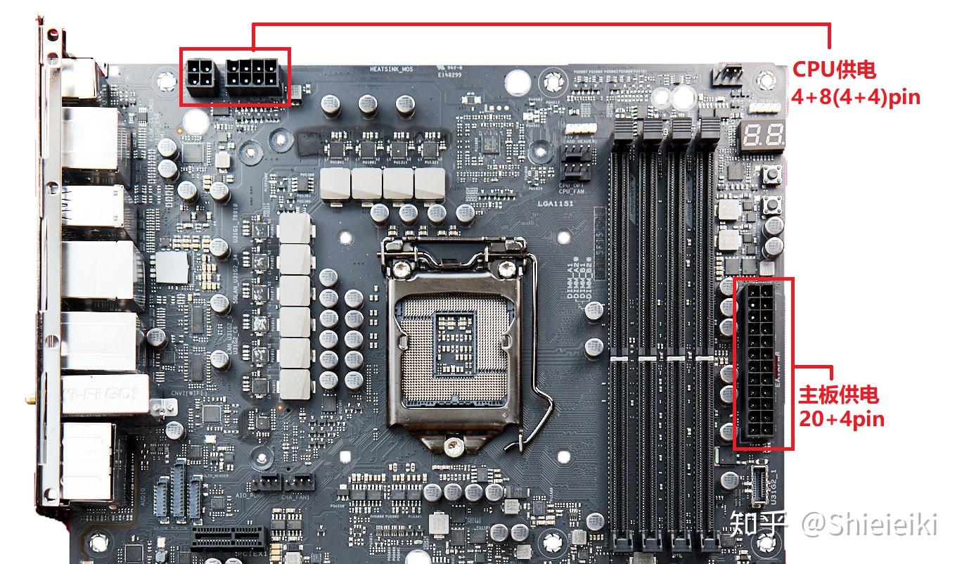 另外一个位于主板右侧,为整个主板提供供电,除了服务器,家用主板几乎全是24pin(20+4)这种。