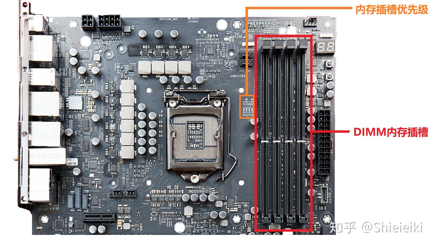 DIMM内插插槽,这个没什么介绍的,但是要注意的是,很多主板是有内存插槽优先级的,这个在你的主板上能看到标识,一般来讲绝大多数主板从左往右数24槽是优先使用的。