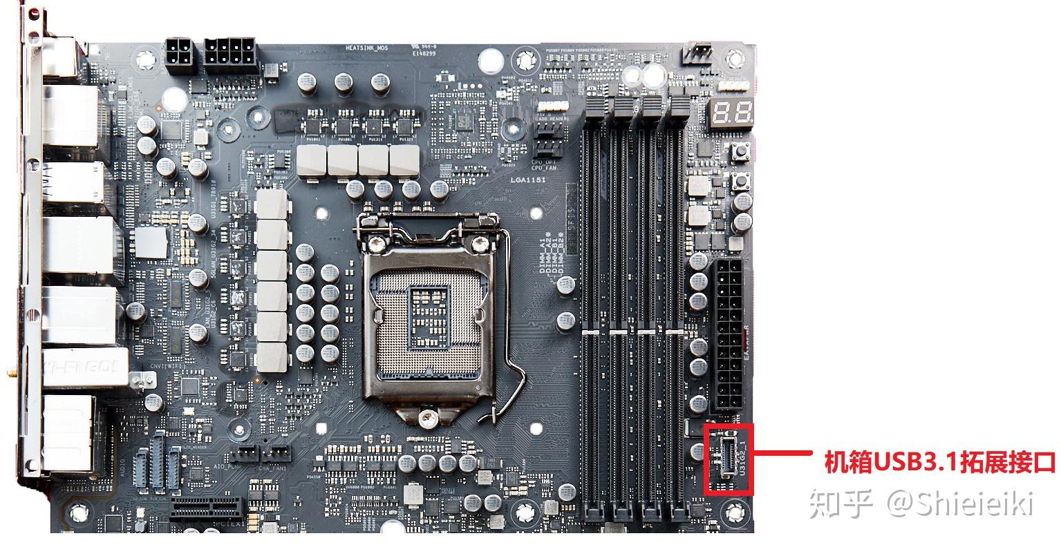 目前很多新的机箱上有USB3.1接口,这些接口可不是凭空和你的电脑连接的,你需要把机箱USB3.1的线接到这里,你的机箱上的USB3.1就可以用了。