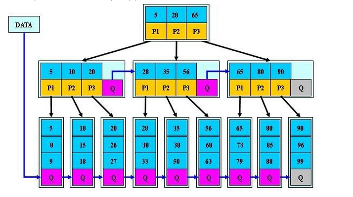 (4)所有叶子节点均在同一层、叶子节点除了包含了关键字和关键字记录的指针外也有指向其子节点的指针只不过其指针地址都为null对应下图最后一层节点的空格子;