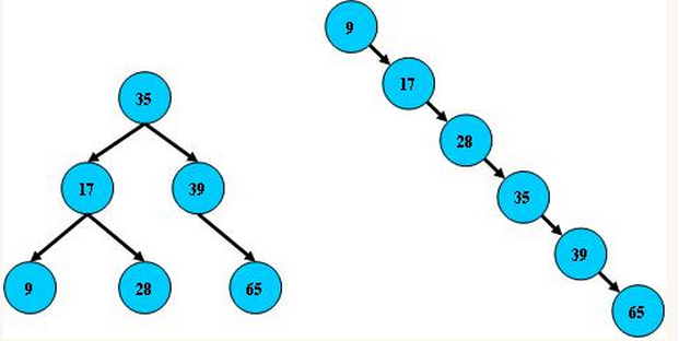 (3)树的左右两边的层级数相差不会大于1;