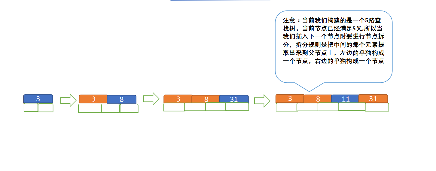 定义一个5阶树(平衡5路查找树;),现在我们要把3、8、31、11、23、29、50、28 这些数字构建出一个5阶树出来;